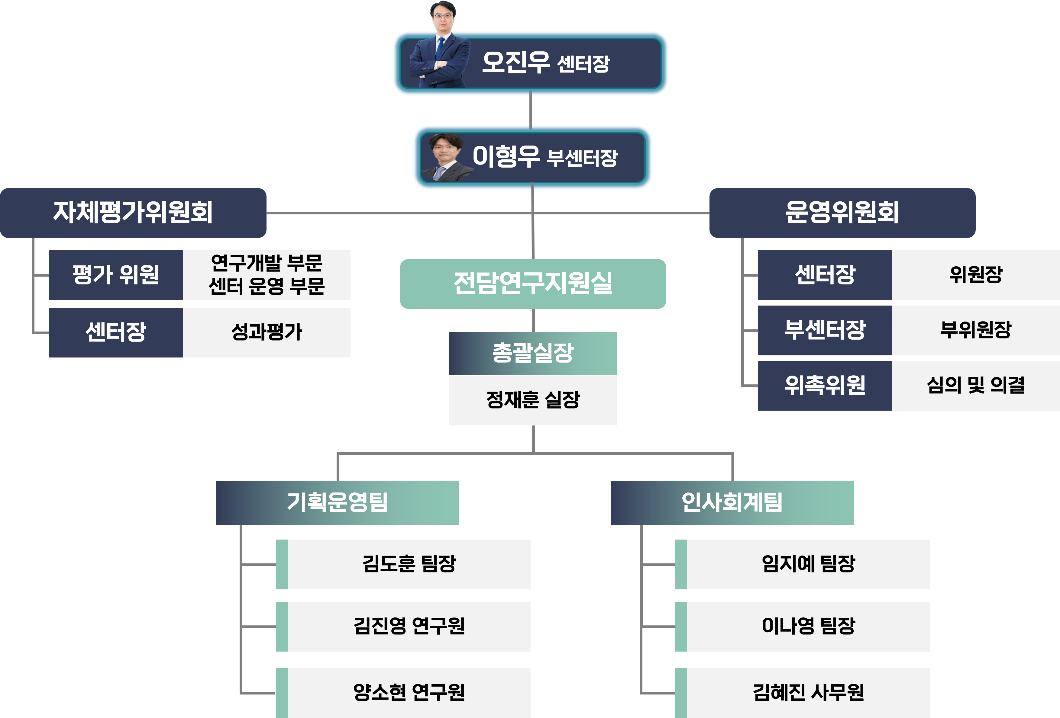 | 1그룹 | 오진우 | 센터장/1그룹장 | 051-510-7263 | ojw@pusan.ac.kr |
